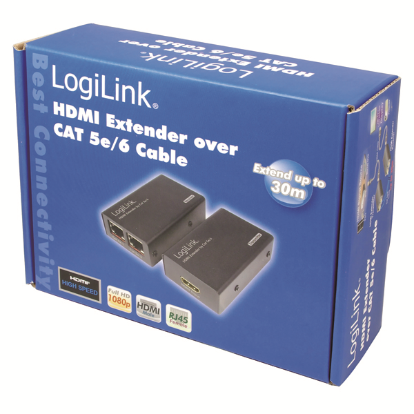 HD0102 HDMI Extender , 1080p çözünürlüğe kadar HDTV görüntülerin çift Cat5e/6 kablo üzerinden 30 metreye kadar mesafesini uzatır.
