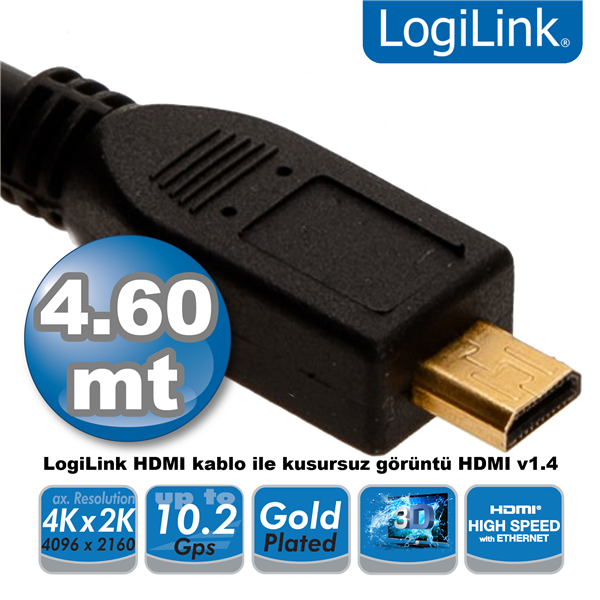 LogiLink Micro HDMI kablo ile 3D dünyasının kapısını açacaksınız. ACE destekli LogiLink HDMI v1.4 kablolar ile 480i, 480p, 720p, 1080i, 1080p, 1440p, 2160p çözünürlükte video aktarımı yapabileceksiniz. 3D dünyası LogiLink ile evinizde.