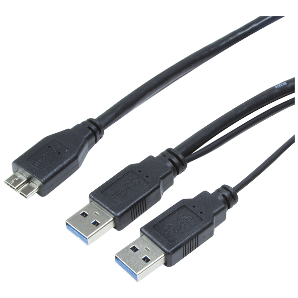 USB 3.0 Y Disk Kablosu, 2x AM - Micro BM, Siyah, 1.8m